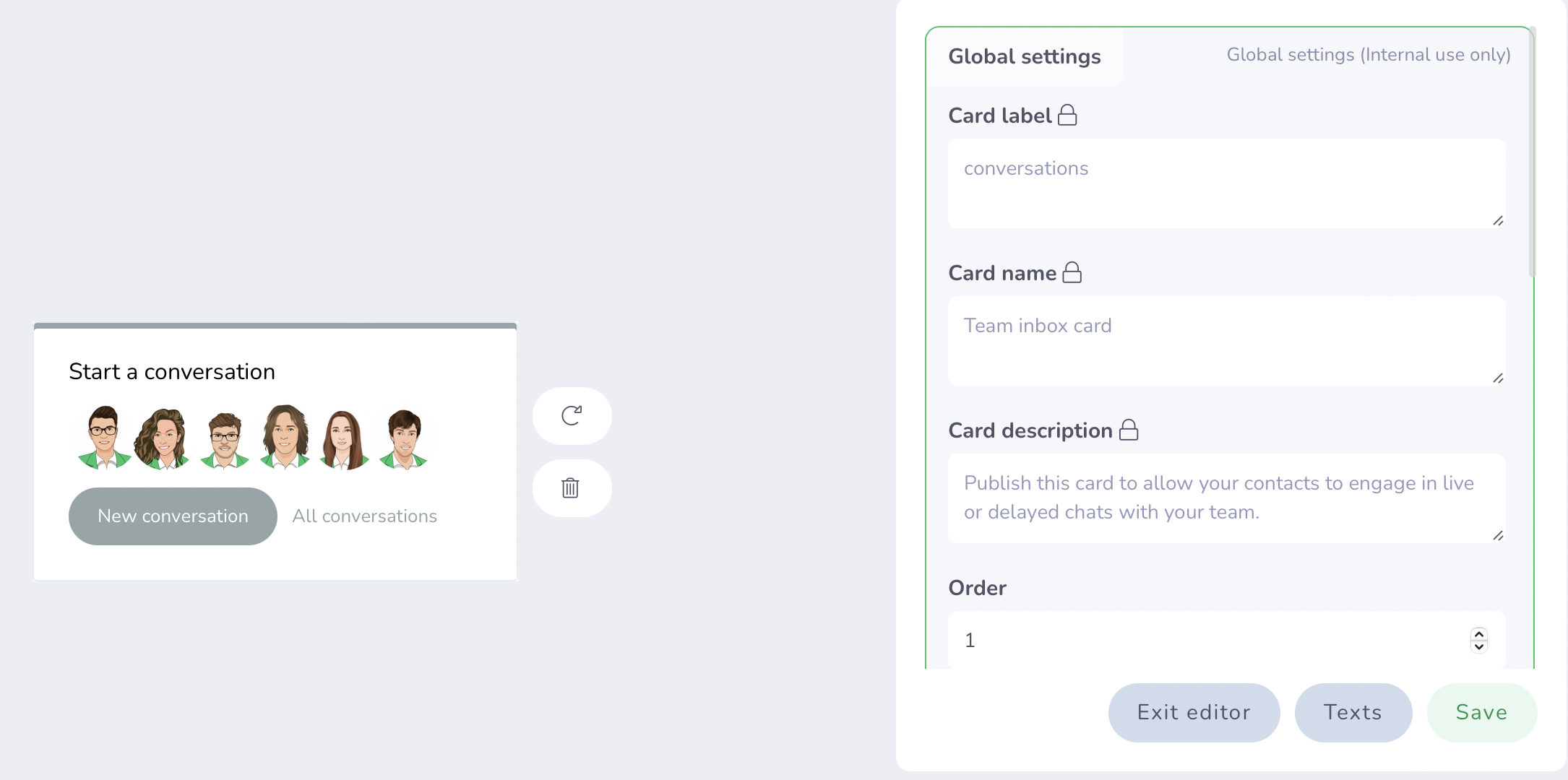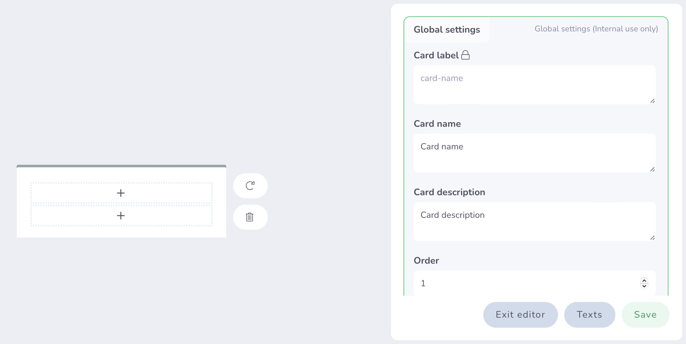 Certain characteristics such as the name of the card or its description cannot be modified, but you can choose who to display this card to, or even modify certain blocks (slots) of the card: for example, change texts, buttons, etc. .