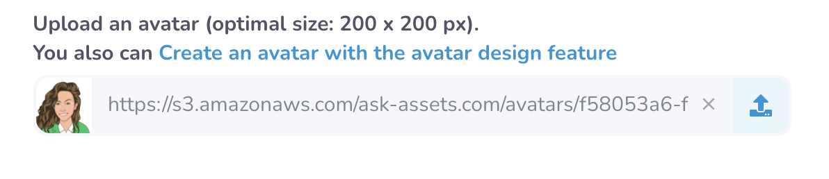 For configuring your avatar, you have two options: you can upload an avatar or you can create one using our avatar design feature.