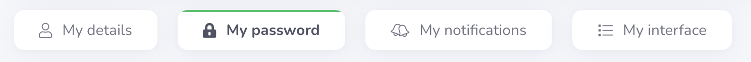 Here you can change your password. Do not hesitate to create the most complex password possible: Passwords must be at least 10 characters long and include upper case letters, lower case letters, numbers and special characters.